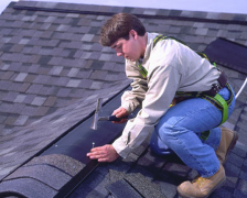 Перед тем как начать монтаж гибкой битумной черепицы нужно провести целый комплекс подготовительных кровельных работ, для того, чтобы подготовить основание под финишную укладку самой черепицы. Как минимум необходимо построить стропильную систему крыши и набить обрешетку. Ну, предположим, что это все уже сделано, осталось лишь смонтировать гибкую битумную черепицу. И так начинаем. Прежде всего, нужно проверить основание под гибкую черепицу. Основание должно быть равным не иметь явных бугров и линз (ям). Оно может быть выполнено из обрезной доски, фанеры или ОСБ-3, если основание выполнено из доски, то обрешетка должны быть набита с расстоянием 3-5 мм между собой, таким образов будет ликвидирована возможность выпирания доски во время сезонных накоплений влагой деревом. Фанера и ОСБ также устанавливается с зазором для этих же целей. Если все это выполнено идем дальше.